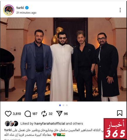 عقب نشره صورة تجمعه بنجوم بوليود الثلاثة والتي أعلن من خلالها عن تعاون كبير ومرتقب يجمع بين الرياض وبوليود.